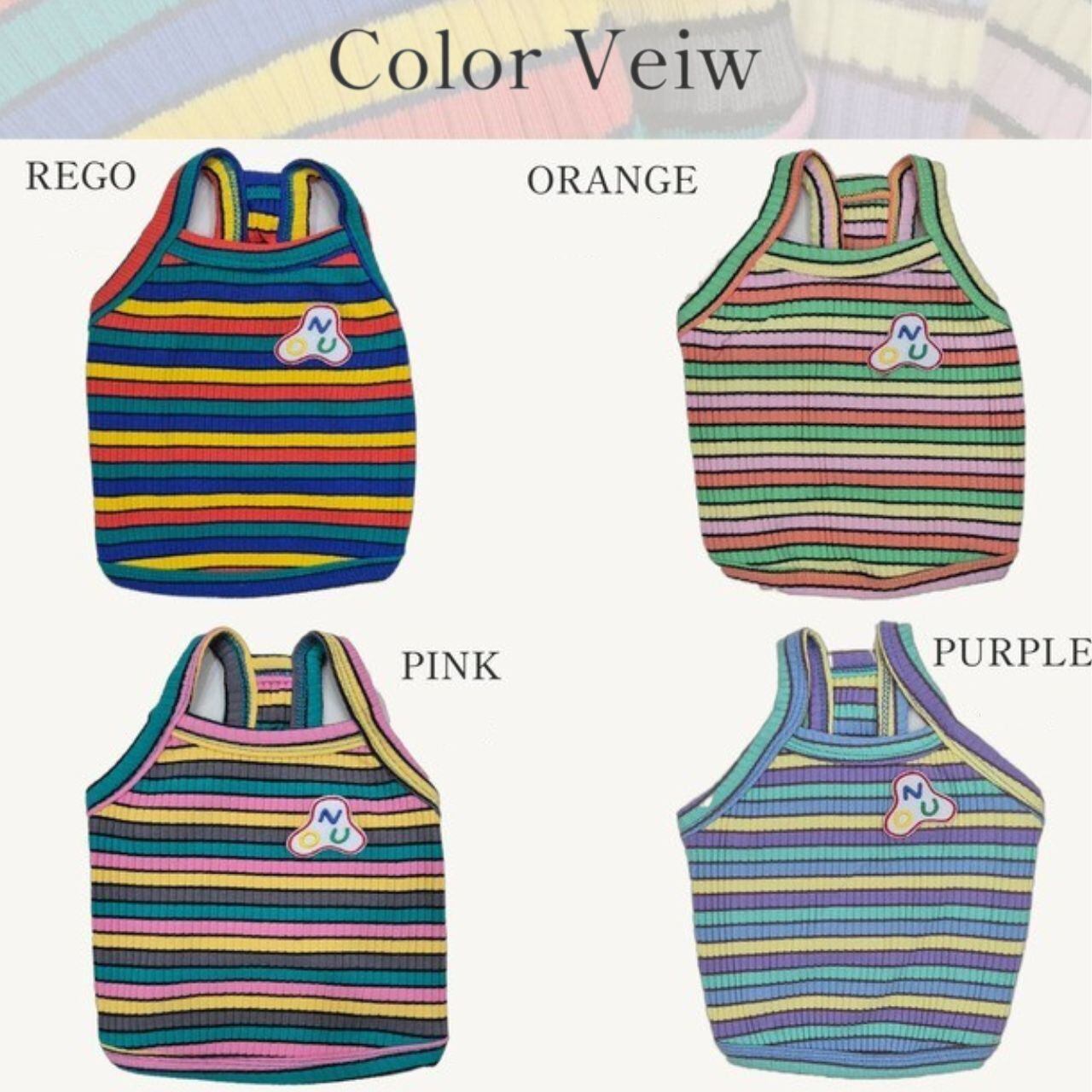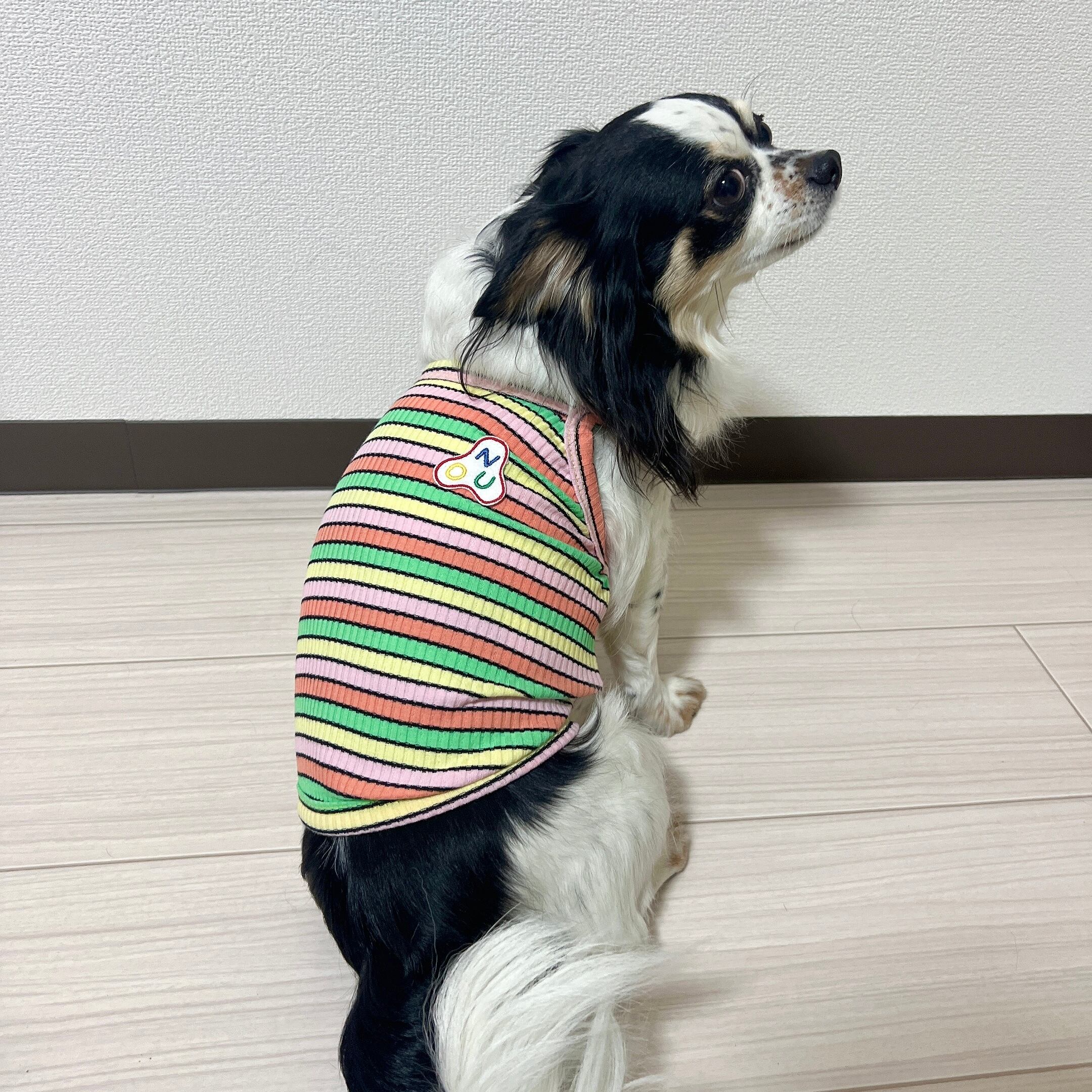 マルチカラー ボーダーノースリーブは、カラフルなボーダーデザインが特徴のスタイリッシュなペット服です!愛犬の個性を引き立てる魅力的なカラーバリエーションで、お散歩やお出かけにはもちろん、普段使いにも最適なアイテムです♡