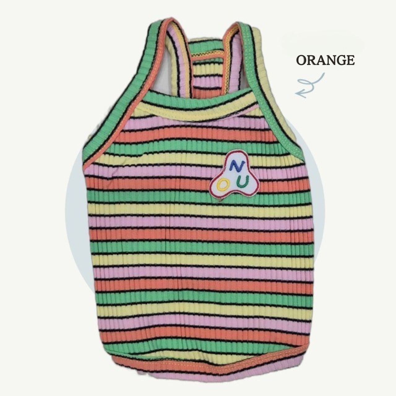 【一部即納】NOUnNOU マルチカラー ボーダーノースリーブ 4colors (ORENGE) ペット服 ドッグウェア