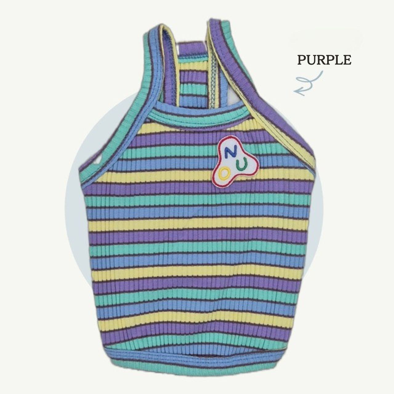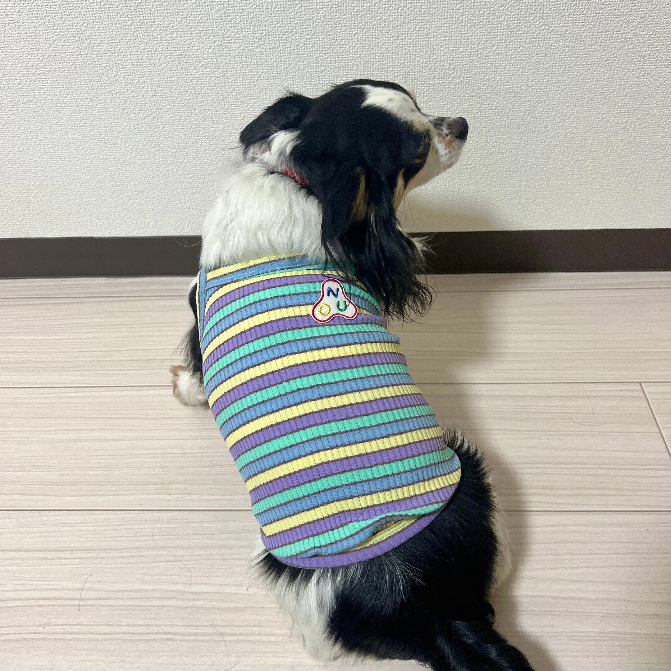 【一部即納】NOUnNOU マルチカラー ボーダーノースリーブ 4colors (PURPLE) ペット服 ドッグウェア
