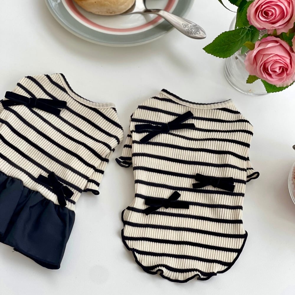 Hug me ベルベットリボンストライプ TOPS&OPS ペット服 ドッグウェア