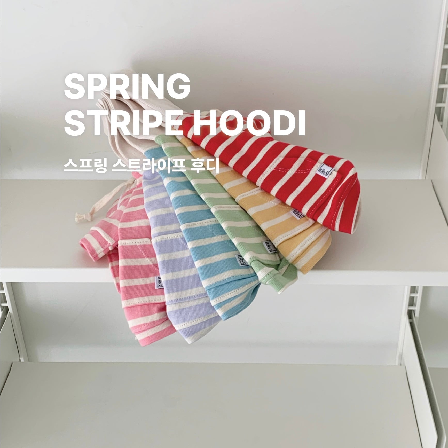 やさしいカラーと、すっきり見える細めのストライプが魅力のフーディ。