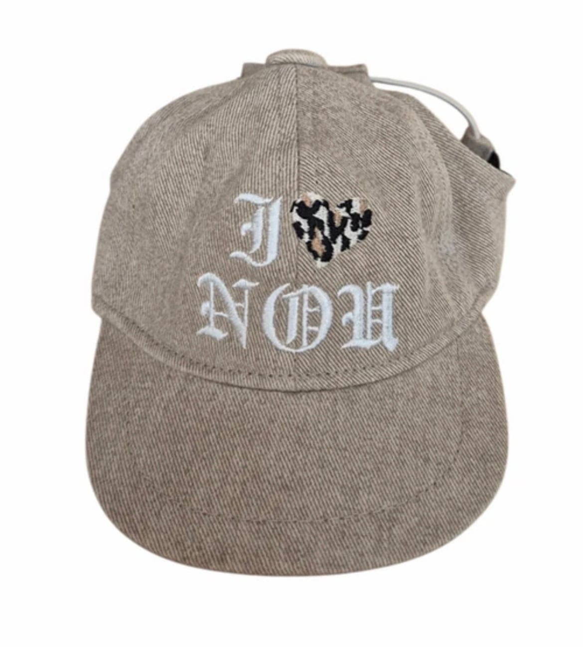 大人気の「I ♡ NOW」刺繍がポイントの、レオパードハート入りペットキャップです。
